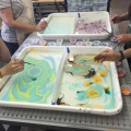 Suminagashi, an ancient Japanese art form, translates literally as “spilled ink" The artists creates patterns by floating ink on the surface of water and transferring it to a sheet of paper. Because the nature of water is ever-changing and constantly moving, each monoprint is like a fingerprint — unique and unreproducible.. $5/person, all materials provided. |